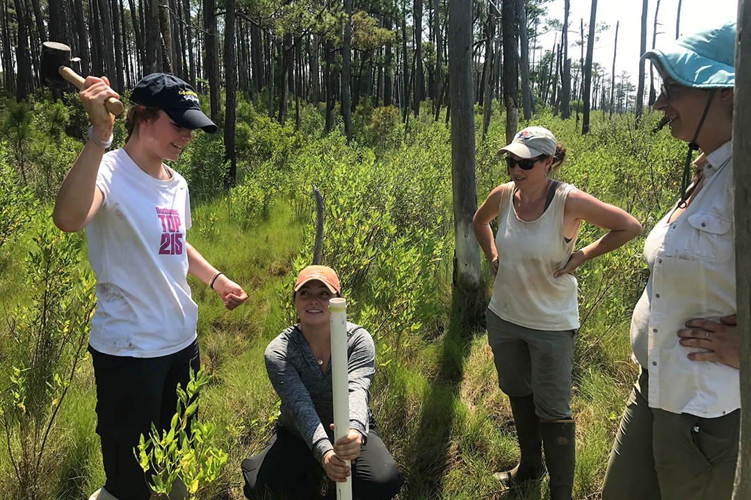 Associate Professor of Biology Keryn Gedan brings her student researchers to the Eastern Shore marshes of the Chesapeake Bay, where sea level is rising at three times the global average. Students spend summers in the tidal marshes collecting samples and designing their own approaches to tackling local ecological problems.