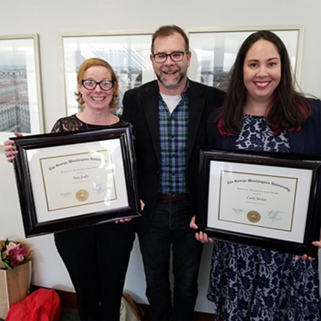 Drs. Tara Scully and Carly Jordan were recipients of the 2019 Morton A. Bender Teaching Award in recognition of their outstanding contributions to biology education at GW.
