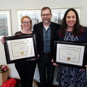 Left to right: Tara Scully, Chair John Lill and Carly Jordan